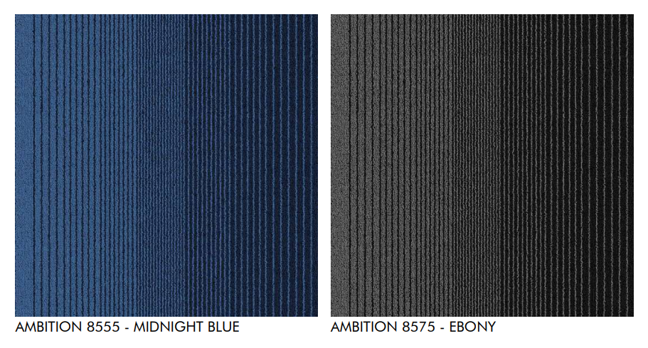 STYLE NAME : AMBITION CARPET TILES CONSTRUCTION : LOOP FIBER : 100% OLEFIN YARN TYPE : CABLE DYE METHOD : SOLUTION DYED GAUGE : 1/10TH PILE HEIGHT : 3.5 MM TOTAL HEIGHT : 5.5 MM PILE WEIGHT : 600 GM PER SQM (±5%) NUMBER OF TUFTS : 169420/M2 PRIMARY BACKING : NON WOVEN SECONDARY BACKING : STABLESHIELD- 100% VINYL TILE SIZE : 50 X 50 CM PACKING : 20 PCS (5M2) PER BOX INSTALLATION METHOD : QUARTER TURN