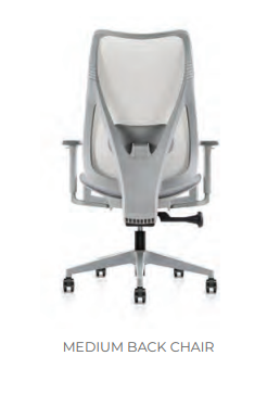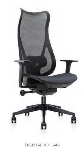 Black or White Nylon backrest with mesh, Adjustable lumber support, 1D Adjustable PU Pad armrest, High density mesh cushion, Self-weight bearing 3 position Locking mechanism, Class 3 Gas lift, 340mm nylon base with 60mm PU wheels.